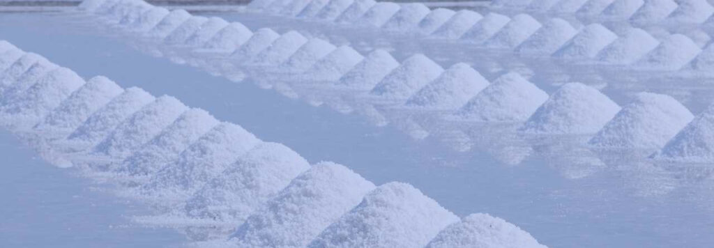 نمك دریایی به روش solar salt work گردش و تبخیر تدریجی آب دریا درون حوضچه گسترده تولید می گردند و دارای درصد خلوص 97.5 می باشد و ناخالصی های آن یون های سولفات – كلسیم – منیزیم می باشد و همچنین به علت پایین بودن فزات سنگین از مزایای آن می باشد كه در دنیا جهت حدف ناخالصی ها عموما از روش سالكس استفاده می گردد در این روش جدید ایتدا كریستال های نمك درون یك كلاسیفایر شیبدار جهت شستشوی اولیه و حذف ناخالصیهای فیزیكی و همچنین ضمن باز شدن كریستالها شستشوی اولیه انجام میگردد.